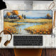 Tapis de bureau orné d'une peinture colorée représentant un paysage d'été spacieux avec une crique et des fleurs sauvages.