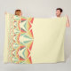 Diese Fleecedecke hat einen abstrakten Fries entlang der unteren Kante von Dreiecken und Pyramiden absteigender Größe und verwendet Vintage Ocker-, Terrakotta- und weiche Grüntöne auf Elfenbeinhintergrund. Das Design wurde von Hand gezeichnet, indem es den Dreiecken einen weichen Rand gab und das Muster entspannt fühlte. Matching-Elemente verfügbar.