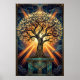 Art Deco Angelic Feather Tree Gold & Midnight Post Poster