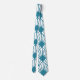 Diese Krawatte hat ein Art Deko-Design von Diamanten mit diagonalen Linien, die wie Lüfter in aquamarin auf einem Feld von Weiß aussehen.