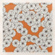 Ein Art-Déco-Untersetzer, der auf einem klassischen Chrysanthemummuster basiert, das in japanischen Textilien verwendet wird, in cremefarbenem Weiß, schwarz mit rostorangefarbenem Hintergrund