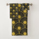 C'est élégant art déco doré abstrait soleil motif sur arrière - plan noir. C'est une belle serviette de bain pour tous les amateurs de design art déco vintage