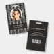 Moderne Deko geometrische Muster auf schwarzem Hintergrund. Zusätzliche Informationen können auf der Rückseite dieses Business-ID-Abzeichens hinzugefügt werden