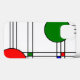 Dieses Handy Gehäuse hat einen Deko Buntglasfenster-Design aus schwarzen Linien und roten, blauen und grünen Quadraten und Kreisen.