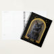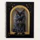 Un boho chic design or et un planificateur d'année noir avec un majestueux chat noir. Sur le dos se trouve un motif à pois polka avec parties scintillant dorée. Idéal pour un amoureux des chats.