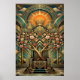Art Deco Cherry Blossom Tree Throne Gold Teal Poster