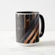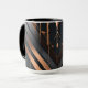 A luxurious Art Deco digital design featuring symmetrical geometric shapes in polished copper and metallic silver against a deep matte black background. Layered diamonds, V-shapes, and diagonal lines create depth and elegance, while subtle reflections enhance the metallic sheen. Perfect for adding a sophisticated, timeless aesthetic to modern interiors, stationery, or fashion-inspired products that celebrate precision and luxury.