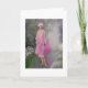 Peinture de dame en acrylique de Dian...........Une carte de notes pour toutes les occasions. Une belle dame art déco féminine avec parasol, peut-être prise dans une douche printanière fleurie. Vierge à l'intérieur pour pouvoir écrire un message spécial.
