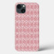 Dieses Handy Gehäuse hat eine Art Deko Design überlappende Diamanten in rosa auf einem Feld von Weiß.