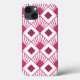 Dieses Handy Gehäuse hat eine Art Deko-Design von beet-farbenen Diamanten mit diagonalen Linien und dunkleren Rübendiamanten auf einem Feld von Weiß.