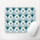 Dieses Mauspad hat ein Art Deko Design von aquamarinen Diamanten mit diagonalen Linien und Meeresblau Diamanten auf einem Feld von Weiß.