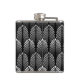Flask in einem Vintagen Art-Deco-Tapeten-Muster, basierend auf einer stilisierten Feder - auf schwarzem Hintergrund silbergrau / grau