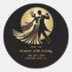A roaring good fun awaits with this elegant birthday gala party sticker with a roaring 20s theme, featuring the silhouette of an elegant woman dancing with her partner. A perfect gift, favor or stationery sticker for a Great Gatsby theme, in gold and black. Whether for a 40th, 50th, 60th, 70th or 80th birthday party, or for a roaring twenties, this vintage art deco nouveau design in black gold foil theme (digital effect) will shine bright. A roaring 20s speakeasy theme party for a doll of any age.
