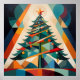 This festive simple art deco design features a triangle Christmas tree and background made of geometric shapes.
