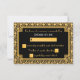 Eine klassische, Vintage Hochzeitskarte mit RSVP-Antwortkarte mit dem Thema "The Great Gatsby" in Schwarz- und Goldtönen. Ein schwarzer Hintergrund hebt das im Art Déco-Stil gehaltene Diamantenmuster in goldgelben Tönen hervor. Koordinierende Aufkleber und Rücksendeadressen-Aufkleber finden Sie im Truly_Uniquely Store.