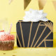 Dieses Verpackungspapier hat ein Art-Déco-Design von Diamanten und Dreiecken in Gold auf einem Feld von schwarz. Ideal für Geburtstage oder feierliche Anlässe.