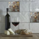 Elegante, moderne Kacheln mit Quadraten, Dreiecken, Rechtecken in den Farbtönen Gold, Grau, Bräune und Rost.