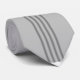 Diese Krawatte hat ein Art Deko-Design von vertikalen Linien mit Diamanten und Kreise in Silber auf einem Feld von grau.