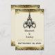 Schwarzer Art-Déco-Kronleuchter, goldener Ankündigung Datum freihalten mit schwarzem Kronleuchter, eine im Art-Déco-Stil gehaltene Grenze, schwarz-goldfarbener Damast in Beige/Ecru. Dieses elegante Design ist eine moderne Herangehensweise an einen Vintag-Retro-Stil, der dem der Roaring 20 und The Great Gatsby ähnelt. Es ist Teil eines Hochzeitsgrades und ist vollständig anpassbar.