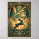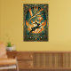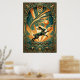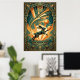 Art Deco Leaping Rabbit Gold & Teal Art Poster