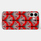 Handy-Gehäuse in einer Reproduktion einer stilisierten Art-Déco-Lilie, Wallpaper-Muster - ein Farbverlauf von leicht silber grau / grau bis dunkel Grafit, mit schwarz Akzent, auf einem tiefen chinesischen roten Hintergrund