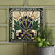 This exquisite ceramic tile showcases a stunning Art Deco design, featuring a stylized lotus floral motif in deep navy blue and lush green, accented with opulent gold details. The geometric patterns that surround the central floral element add a touch of sophisticated elegance, reminiscent of the roaring twenties. Perfect for adding a vintage flair to any space, this tile brings a timeless charm and a touch of luxury to your home decor, whether used as a backsplash, accent piece, or wall art. Its intricate details and rich color palette make it a true statement piece.