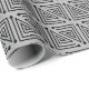 Dieses Verpackungspapier hat ein Art-Déco-Design aus einem rechten Winkel mit einem Labyrinth Set in schwarz auf einem Feld von grau.