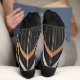 This abstract Art Deco design exudes luxury and sophistication with its sweeping metallic arcs in gold, copper, and grey against a deep black background. Symmetrical curves converge towards a central focal point, framed by sharp angular lines and vertical patterns, evoking glamour and retro elegance. Perfect for elevating home decor, office art, and stylish accessories with a timeless, opulent aesthetic.