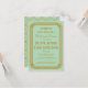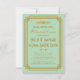 Diese Einladungen zum Probe-Dinner sind mit einer Minze- und glitzernden Goldpalette, einem geometrischen Rahmen und anderen stilistischen Details inspiriert, die alle durch Art Deco und die rauschenden Zwanziger Jahre. Sie können die Textfelder des Beispiels nach Ihren Wünschen anpassen.