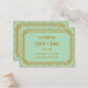 Diese Platzkarten verfügen über eine Minze- und glitzernde Goldpalette, einen geometrischen Rahmen und andere stilistische Details, die durch Art Deco und die rauschenden Zwanziger Jahre inspiriert wurden. Sie können die Textfelder des Beispiels nach Ihren Wünschen anpassen.