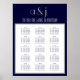 Grau, Navy Blue und White Art Deco Monogram Wedding Seating Chart für 150 Personen mit 10 pro Tisch. Template Hochzeitsplanposter. Einfaches Design mit Deko-Schriftart. Ändern Sie die Initialen im Monogramm, die Braut- und Bräutigam-Namen und fügen Sie Ihre Tisch- und Gastnamen für den Sitzplan hinzu. Eine andere Farbe gewollt, kontaktieren Sie bitte luxuryweddinginvitations@gmail.com