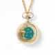Classic Art Deco Moon und Sterne Design in gebürstetem metallischem Gold, in Emaille aquamarin / Pfauengrün mit goldfarbenem, texturiertem Hintergrund