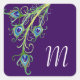 Art Deco Nouveau Peacock Feathers Swirl Quadratischer Aufkleber