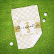 Dieses Design zeichnet sich durch ein Seepferd mit einem goldenen Effekt Meereswellen-Muster aus. Das im Art-Déco-Stil gehaltene Küstenbild macht ein modernes und einzigartiges Golftücher mit personalisiertem Text.