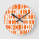 Diese Uhr hat einen Deko-Design aus Ovalen und Halb-Ovalen in Weiß und Orangetönen.