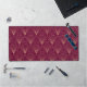 Art Deco pattern with gold geometric fan motifs on a maroon background, creating an elegant, symmetrical design with vintage sophistication.