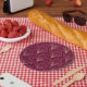 Art Deco pattern with gold geometric fan motifs on a maroon background, creating an elegant, symmetrical design with vintage sophistication.