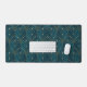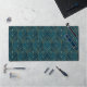 Art Deco pattern with gold geometric shapes on a deep teal background, featuring arch motifs and dotted accents, creating an elegant vintage feel.