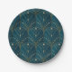 Art Deco pattern with gold geometric shapes on a deep teal background, featuring arch motifs and dotted accents, creating an elegant vintage feel.