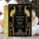 Schöne Imitate Goldfolie und schwarz Art Deco Nouveau Roaring 20's Hochzeit Einladungen mit Pfauen. Ideal für einen Großen Gatsby, Prohibition, Reklamation oder Themenevent der 20er Jahre! Alle Formulierungen können an Ihre Bedürfnisse angepasst werden. Matching Punkt auf diesem!