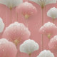 This Art Deco pattern features soft, fan-shaped florals in blush pink and creamy white, arranged across a warm rose background for a delicate, airy effect. Gold accents and fine radiating lines add shimmer and structure, while scattered pearl-like dots bring a touch of elegance. The overall design feels romantic, modern, and subtly glamorous.