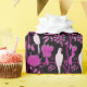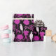 ART DECO PURPLE BLUMEN, WEISSE PARROTEN AUF SCHWAR GESCHENKPAPIER