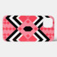 Dieses Handy Gehäuse hat eine Art Deko quilt-inspiriert Design von Diamantformen in schwarz, weiß und rosa auf einem Feld von Wassermelonen.
