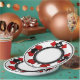 Auf dieser unterhaltsamen Papierplatte steht Leslie Sigal Javoreks originales Art-Déco-inspiriertes Design: Auf weißem und sanftem Untergrund mit einer schattigen Schattierung sind mehrere knallige Schwarz-Weiß-Ränder sowie 4 Gruppen mit drei überlappenden Formen zu sehen, wobei jede Gruppe eines der ikonischen Anzüge der Kartenspiele darstellt (Diamant, Club, Herz & Spade). Schließlich ist ein benutzerdefiniertes Feld für Ihr Monogramm!