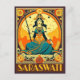 Saraswati ist die hinduistische Göttin des Wissens, der Musik, der Kunst, der Sprache, der Weisheit und des Lernens. Art Deko Stil für Vasant Panchami.