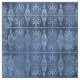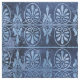 Dieses Art Déco und griechisch inspirierte Design hat einen bedrückten blauen Hintergrund mit verzierten hellblauen Ventilatoren und Scrollwork.