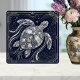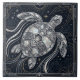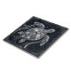 This stunning ceramic tile features a majestic sea turtle rendered in a luxurious mother of pearl style. The intricate Art Deco-inspired linework, accented with touches of gold and silver, creates a sense of timeless elegance. The deep navy background provides a dramatic contrast, making the shimmering turtle the undeniable focal point. Perfect for adding a touch of oceanic sophistication to any space, this tile evokes the beauty of marine life and the glamour of the Roaring Twenties. Elevate your home decor with this unique piece of functional art.