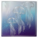 Immerse yourself in the enchanting depths of the ocean with this stunning Art Deco-inspired ceramic tile. Featuring elegant silver jellyfish gracefully floating against a mesmerizing gradient of soft blue to deep purple, this design evokes a sense of tranquil underwater wonder. Delicate specks of turquoise glitter and subtle constellation patterns add a touch of celestial magic to this oceanic tableau. Perfect for adding a touch of sophisticated coastal charm to any space, this tile is a beautiful reminder of the mysteries and beauty of the sea. Its unique blend of vintage glamour and aquatic allure makes it a captivating addition to your home decor.