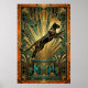 Art Deco springender goldener Luchs-Wandkunst Poster