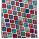 Dieser Duschvorhang hat einen kunstvollen Deko-Design von Quadraten aus überlappenden Winkeln in Retrotönen in Blau und Rosa.
